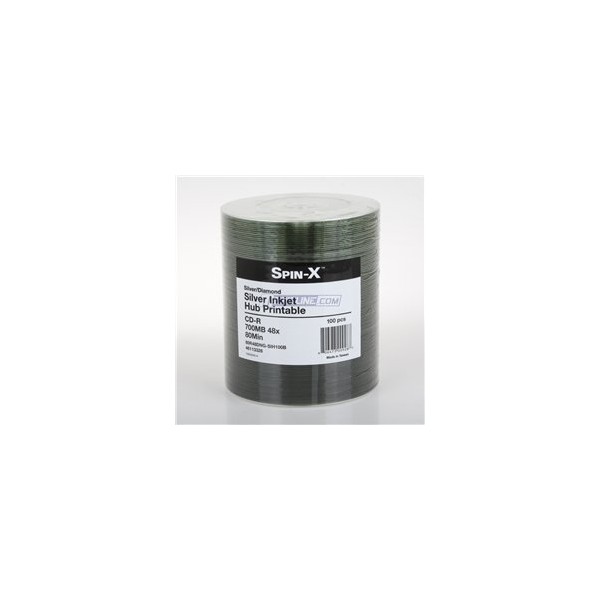 Spin-X 100 Diamond Certified 48x CD-R 80min 700MB Silver Inkjet Hub Printable