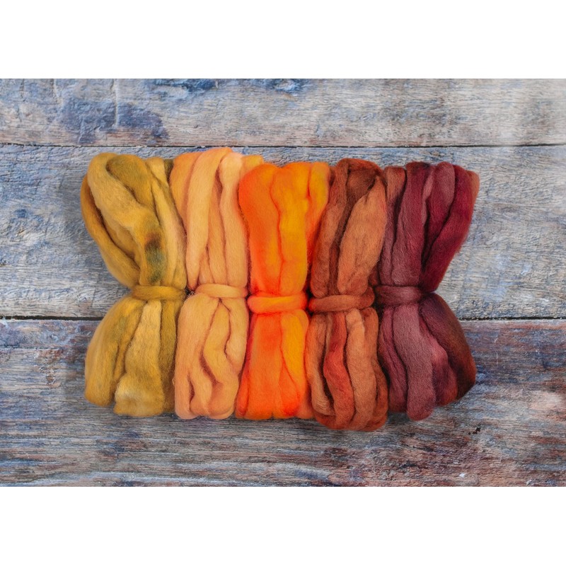 Spinning Fiber Super Soft BFL Wool Top Roving drafted for Hand Spinning with Drop Spindle or Wheel, Felting, Blending and Weaving. Variegated Hand Dyed Mini skeins. 5 Ounce Discount Pack, Harvest
