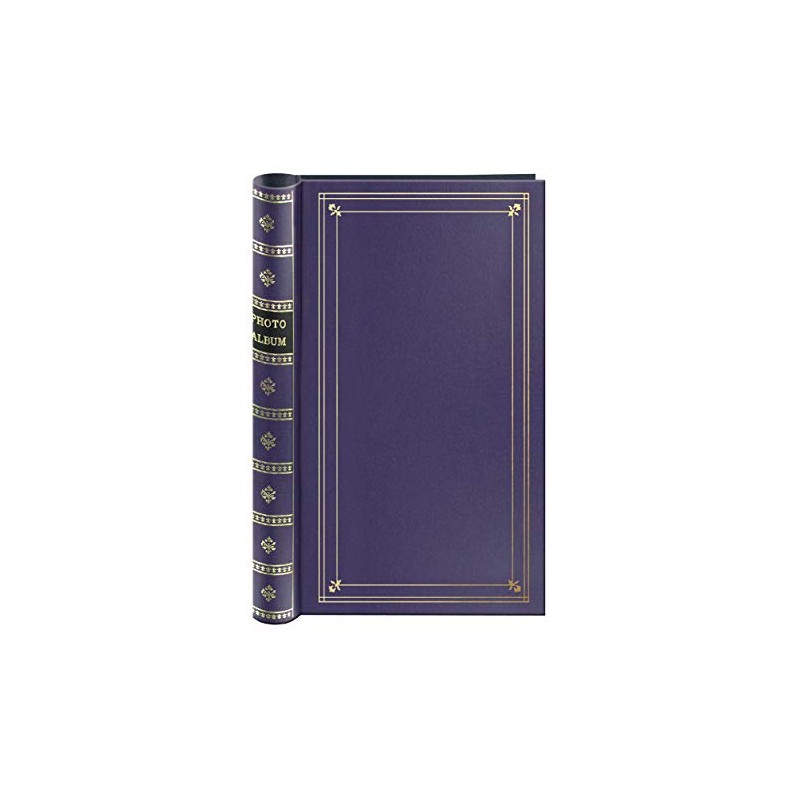 This elegant leatherette cover photo album features antique gold tooled accents and a rounded spine with color coordinated "PHOTO ALBUM" emblem. The album's patented Bi-Directional pockets hold horizontal or vertical photos up to 4''x6'', plus panoramics. There is a memo writing area next to each pocket. Photos are displayed three per page. The album holds 300 photos up to 4"x6" in optically clear pockets with a shaded paper background. The gold-tone durable metal coil binding allows the pages to lie flat for easy photo viewing. Archival, photo safe: acid, lignin and PVC free.