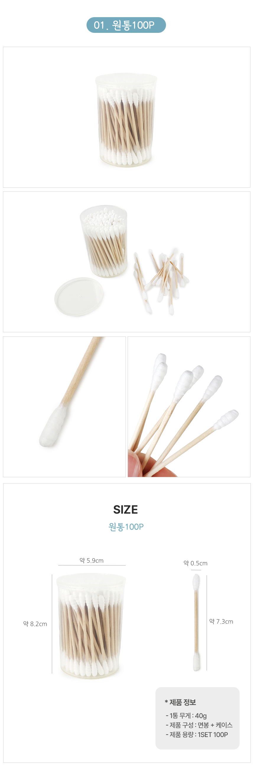 Spiral Cotton Swabs 100-Piece Cylinder Pack 10ea