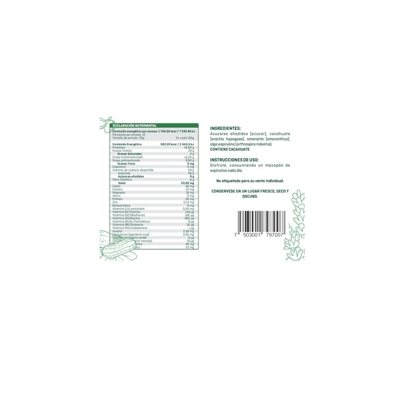 Spiral Snack, Mazapn con Spirulina, (Pack de 12), 25 gramos CU, Con Cacahuate, Amaranto y Spirulina, Fuente de Energa, 100 Natural, Sin Conservadores