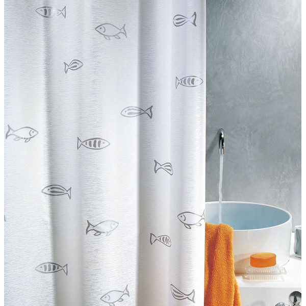 Spirella Kos Metallic Effect Polyester Shower Curtain, 240 x 180 cm, White/Silver