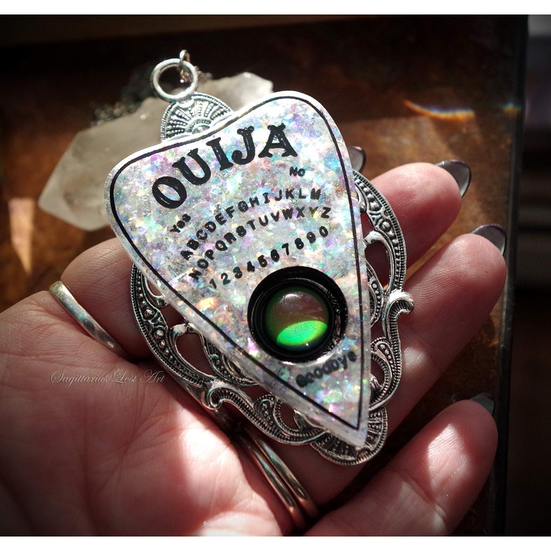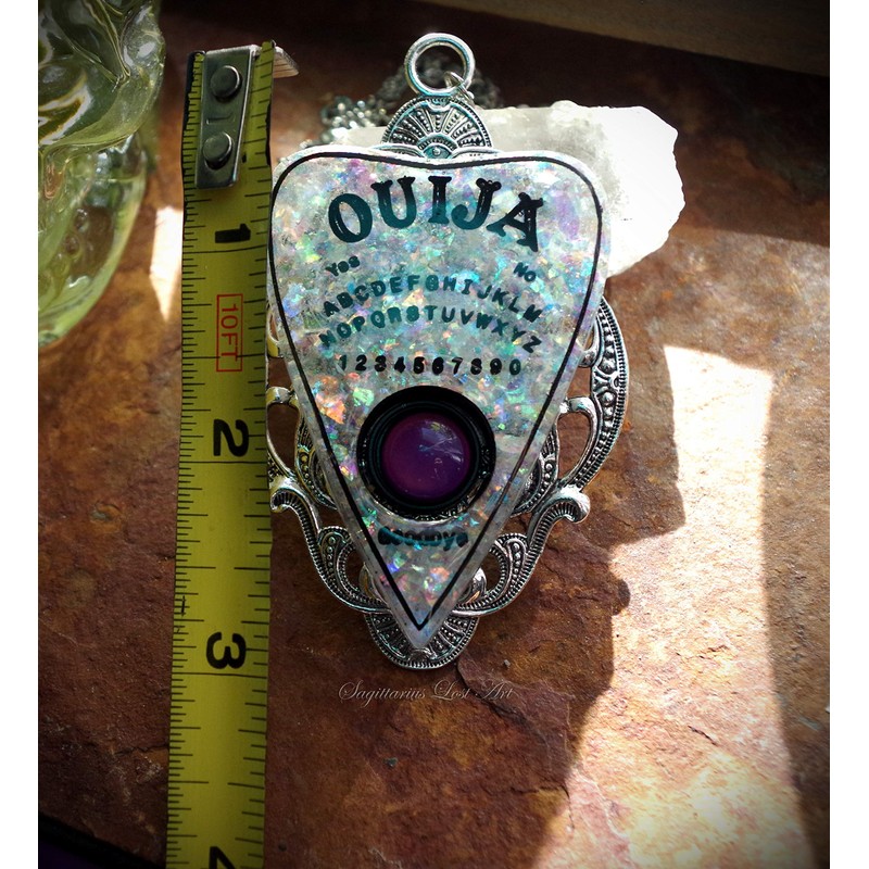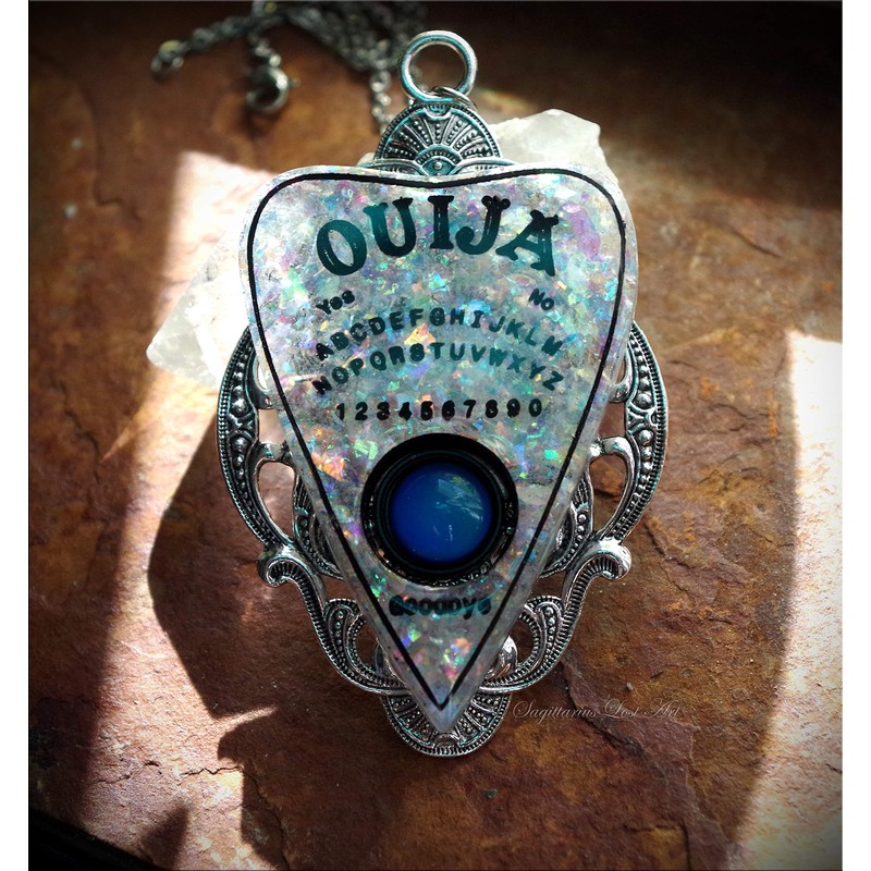 Spirit Board Mood Color Change Resin Faux White Opal Planchette Hand Made Necklace