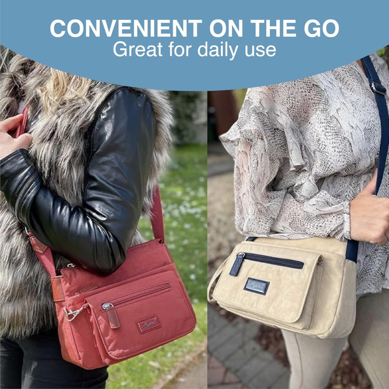 • HANDS-FREE CONVENIENCE: The Spirit Waterproof Crossbody Bag has been crafted from durable nylon with multiple pockets for seamless organisation. Its fully adjustable design allows for comfortable, hands-free carrying. Ideal for those who prioritise functionality without compromising on fashion.