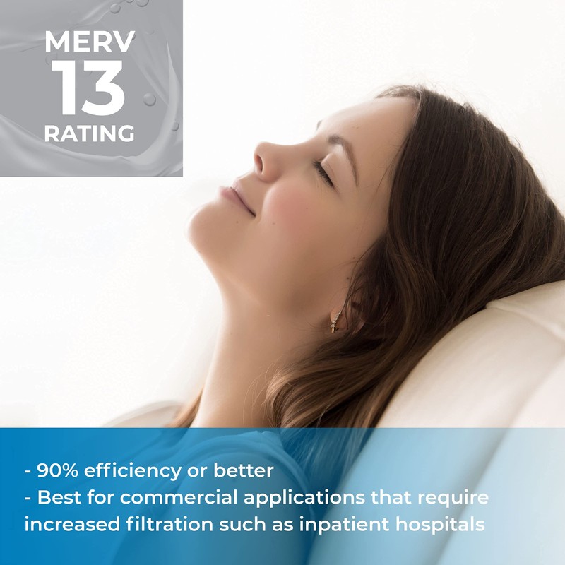 - MERV 13 RATING: With an efficiency of 90% or better, these filters are a great choice for inpatient hospitals and other commercial environments that require increased filtration.