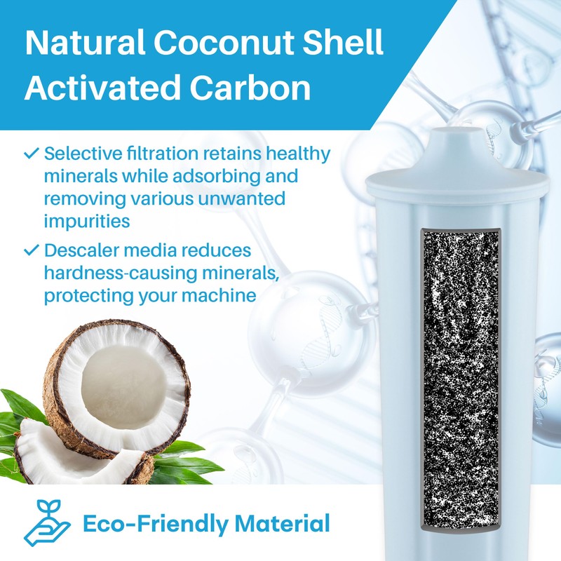 The SpiroPure SP-JR100 Coffee Water Filter is a compatible replacement for the Jura Clearyl Blue Filter Cartridge 71445 / 67879. The cartridge uses food-grade and lead-free materials, employing a natural coconut carbon and non-sodium positive resin to improve and preserve the flavor of your coffee while protecting your coffee machine from harmful limescale buildup. Replace the cartridge every 2 months or every 40 gallons depending upon water quality and usage for maximum protection against hard water and scale.