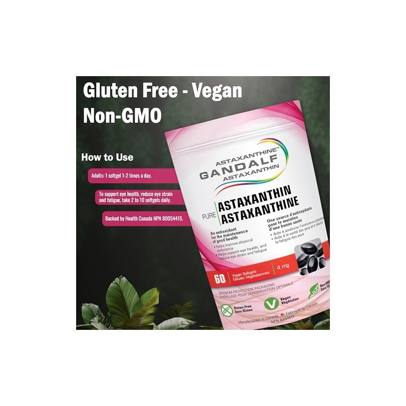 SPIRULINE GANDALF, GANDALF SPIRULINE Gandalf Astaxanthin 4mg, 60 Vegan Softgels 30-Day Supply - Vision & Joint Wellness Supplement, Supports Eye Comfort & Flexibility, Antioxidant Formula, GMO-Free