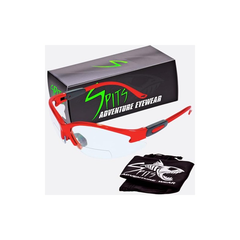 Spits Cougar Bifocal Safety Glasses with Magnifier 23 Limited Edition Frame Color Options (Frame Color: Solar Red, Magnifier: 2.00)
