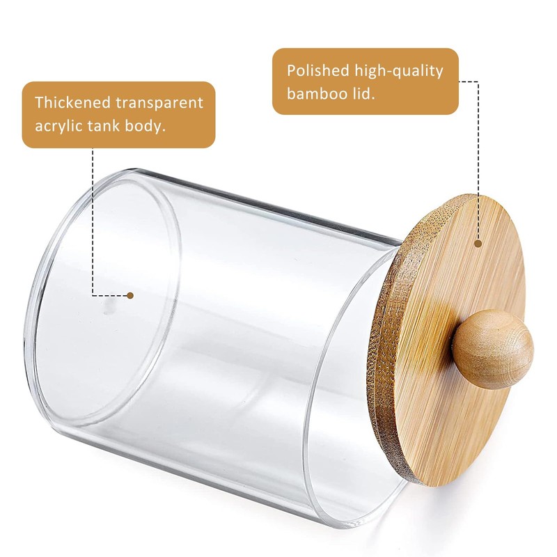 - Material: these cotton buds containers are made of high-quality acrylic material, which is durable, non-toxic and has no strange smell. The lids are made of high quality bamboo, with a smooth edge, safe and hard, will not be broken.