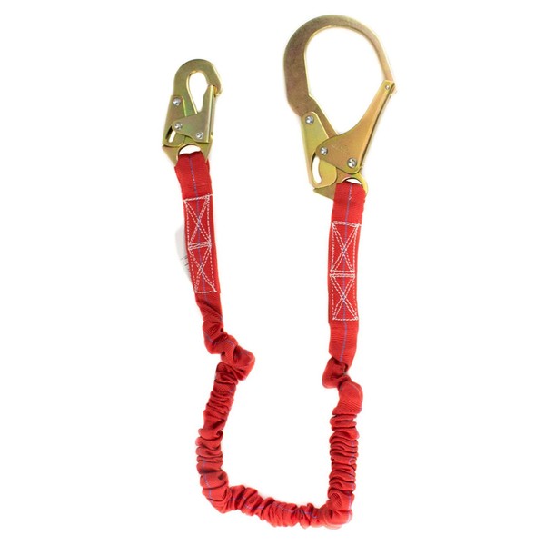 SPL-S102 Yellow Elasticated Internal Shock Absorbing Lanyard w/Two Steel Forged Snap Hook (N-3610) (1, Red)