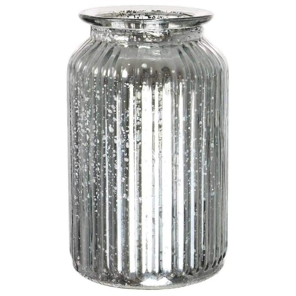 Splatter Silver Ribbed Vase Jar Home Decoration Decor Ornament