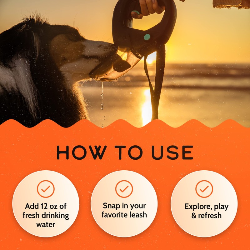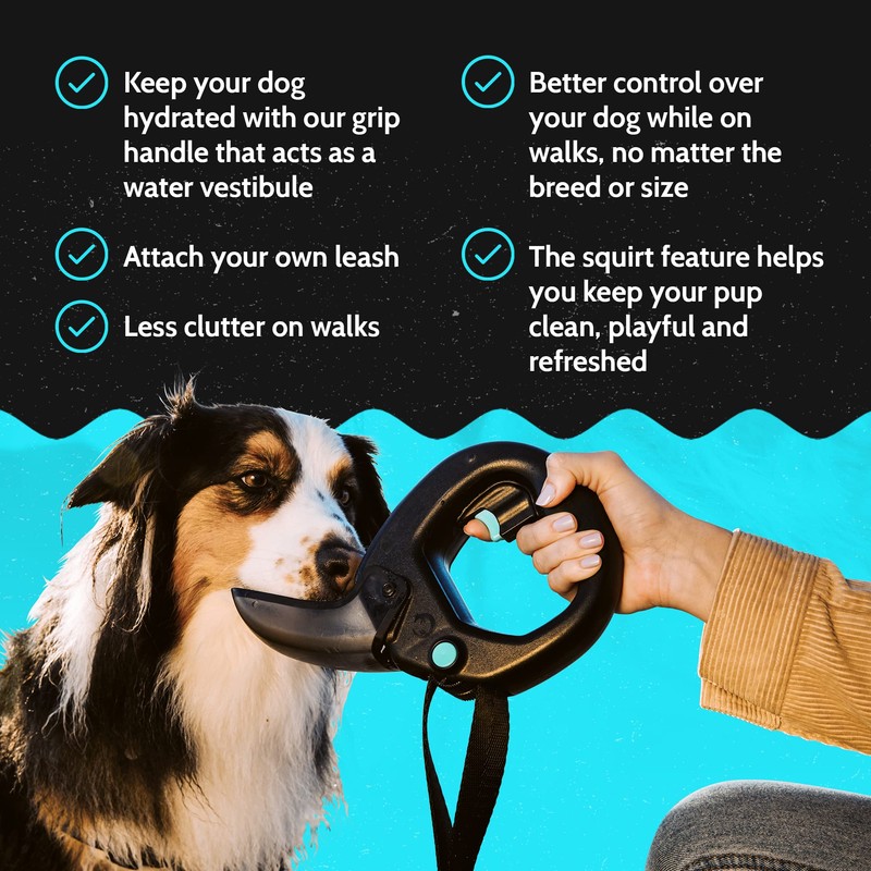 - DURABLE & LIGHTWEIGHT DESIGN: Built to manage the toughest pullers, our ergonomic grip handle holds up to 12 fl oz of refreshing drinking water to hydrate your dog on hikes, runs, and long walks. No need to carry multiple items, such as bulky portable dog water bottles or dispensers that require foldable or collapsible travel dog bowls.