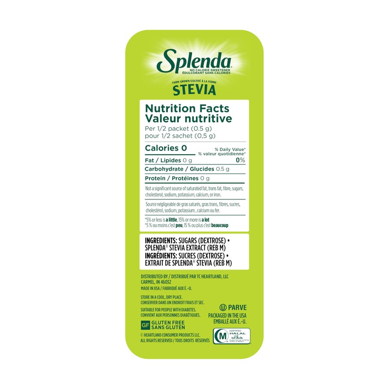 - US GROWN STEVIA – Splenda Stevia uses plants sweetened by sunshine on Splenda Stevia Farms. Grown on our farm, enjoyed at your table.