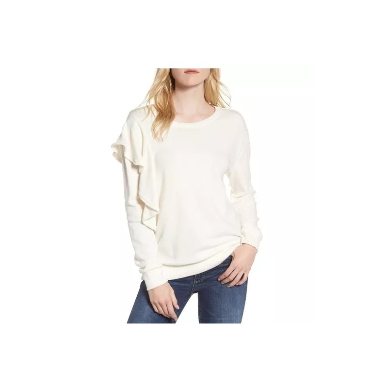 Splendid NWT Women's Splendid West Fourth Ruffle Sweatshirt Ivory Sweater Size L $98 G009