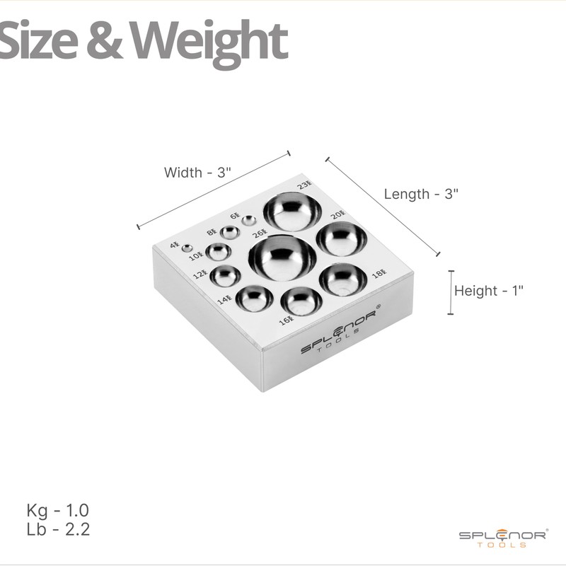 Splenor Tools Steel 11 Cavity Flat Dapping Doming Block - for Jewelry Making - Metal Forming Tool - Shaping Die