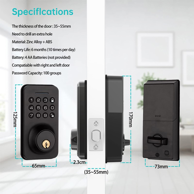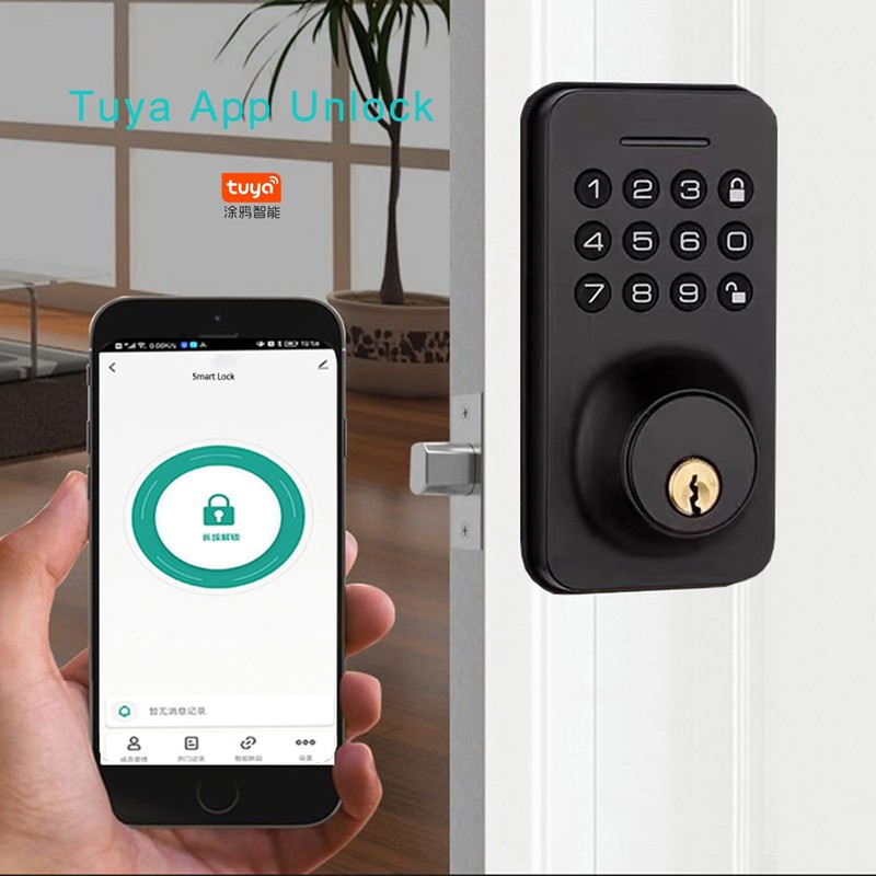 - [Remote Control /BT Access] funktioniert mit der Tuya Smart App (BLE), Sie können Ihr intelligentes Türschloss per Smartphone sperren/entsperren, Codes aus der Ferne einrichten und Zugriffsprotokolle in Echtzeit überprüfen.