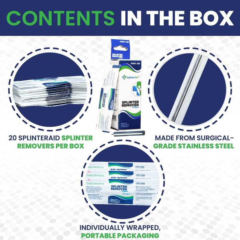 - EASY WAY TO REMOVE SPLINTERS: Get any pesky splinter out the easy way with SplinterAid. The tri-bevel design ensures you’ll be splinter-free in seconds, with little pain or discomfort.