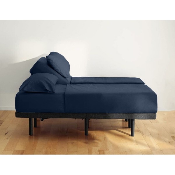 - 1000TC 5-Piece Split King-Mediterranean Blue Sheet Set Includes: 1 King Flat Sheet (108inch W x 102inch L), 2 Split King Fitted Sheets with All-Around Elastic (39inch W x 80inch L + 18inch) elasticized Deep-Pocket fits low/high profile foam and tall mattresses) and 2 King Pillowcases (20inch W x 40inch L). Our elasticised fitted sheet stays put all night without popping off giving your bed a tidy and sleek look.