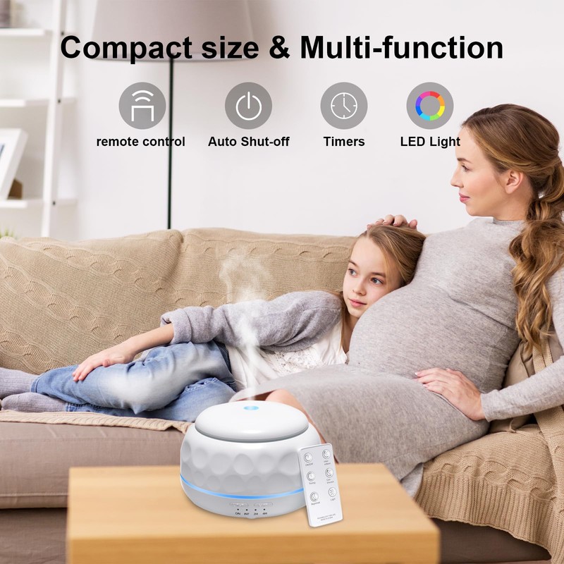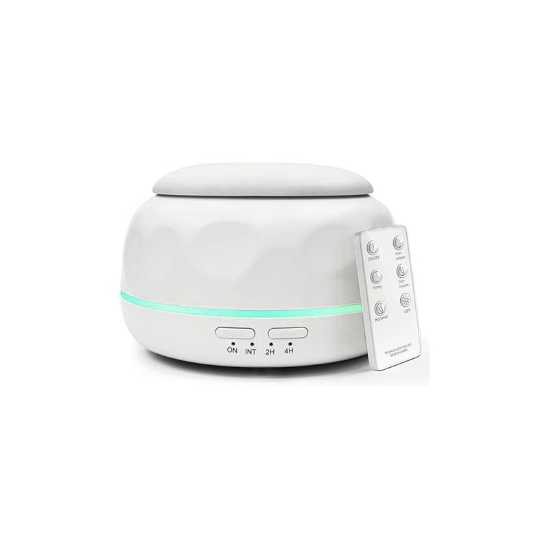 - Remote Control: Easily adjust settings without getting up. With the remote control, you can turn the ultrasonic Aroma diffuser on/off, change the light color, set the timer, and modify the misting mode, whether you're working or relaxing.