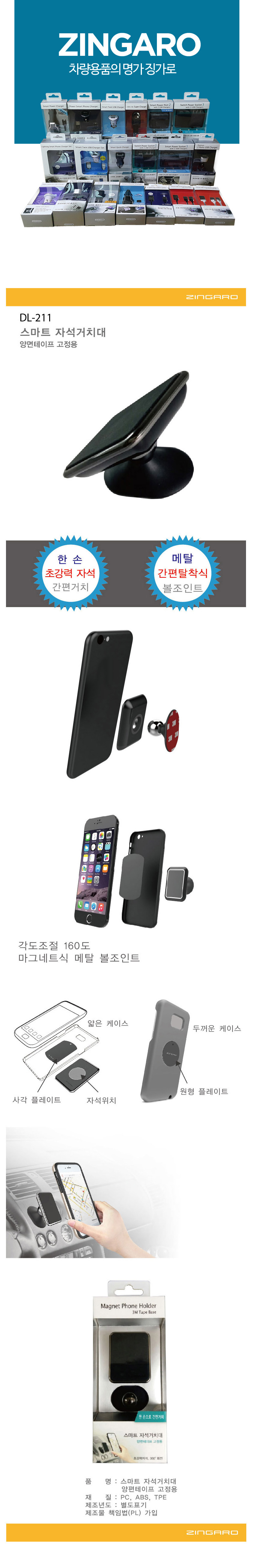 SPLITZ59 징가로211 양면테이프 부착 초강력 미니 자석 거치대 Zingaro211 Double-Sided Tape Strong Mini Magnetic Stand
