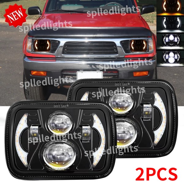 splledlights 1982-1995 fit Toyota Pickup H6054 Upgrade Black 2PC 7x6" Rectangle LED Headlight