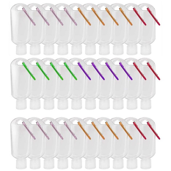 spmimi 30 Pack Travel Plastic Clear Keychain Bottles, Leakproof Refillable Empty Bottles Portable Squeeze Containers with Flip Cap(50ml/1.7oz)