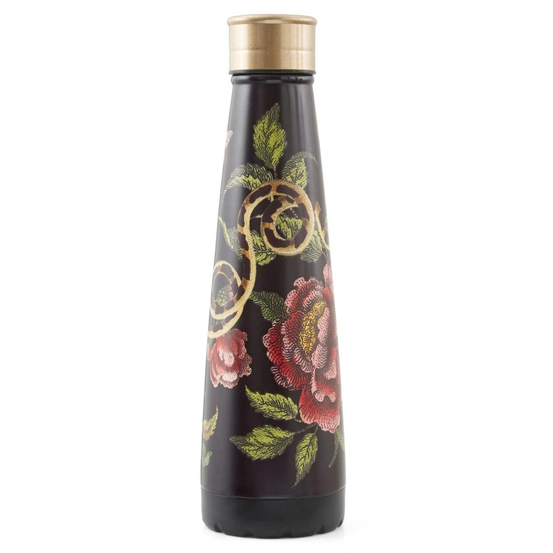 - Stylish water bottle with dark edgy floral design made from stainless steel.