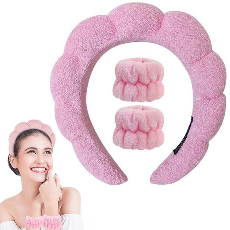 Sponge Headband Wristband Set, Spa Headband for Washing Face Wristband Set, Face Washing Headband, Makeup Headbands for Women Girls, Skincare Non Slip Headband for Women, Yoga, Sports, Shower