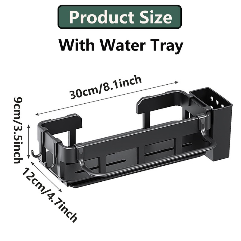 Our kitchen sink caddy has a large size of 30 * 12 * 9cm (L*W*H), which provides more space for storing your sink cleaning accessories.