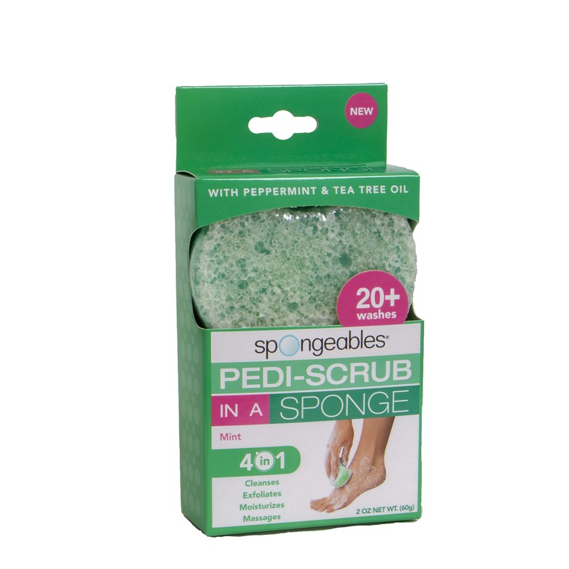 Spongeables Pediscrub Foot Buffer The Soap In The Sponge Contains Peppermint and Tea Tree Oil for Exfoliating 20+ Washes Mint Scent, Green, 3 Count