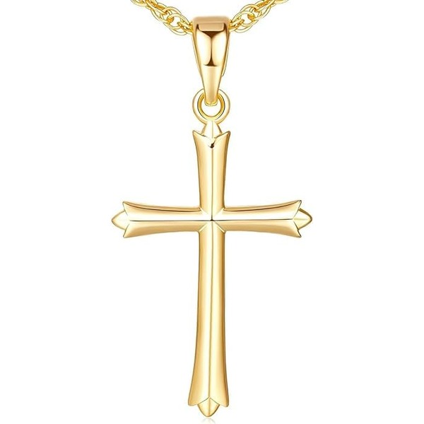SPONIT Gold Cross Necklaces for Women 14K Gold Cross Pendant Necklace Cross Chain Necklace for Women Faith Cross Necklace Jewelry for women 22 mm