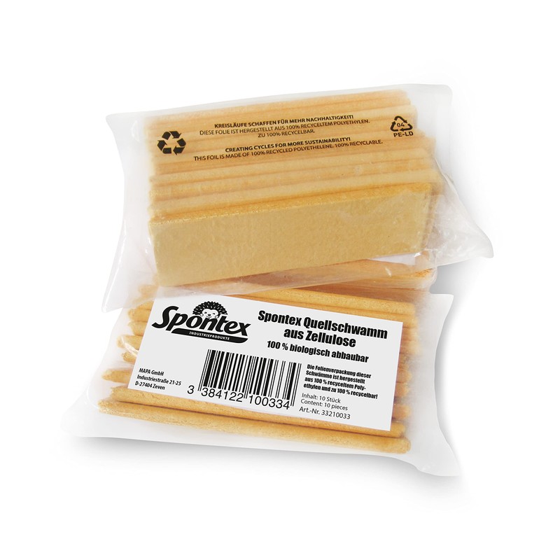 Spontex 100% Biodegradable Cellulose Swelling Sponge 1 x Pack of 10 in Recycled and Recyclable PET Bag, Absorbent, Each 135 x 90 x 37 mm
