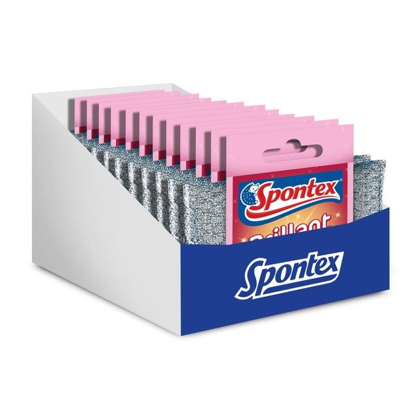Spontex Brillant Cleaning Pad, Pack of 12, for Sensitive Surfaces, Scratch-Free and Long Lasting, Silver and Pink