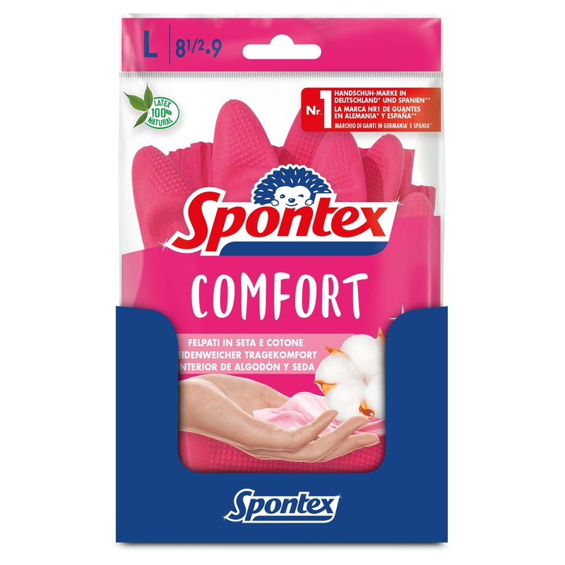 Spontex Comfort Household Gloves for Optimal Protection and Comfort, Size Large, 12 Pairs