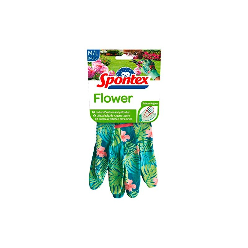 Spontex Flower Floral Gardening Gloves Ideal for Light Gardening with Non-Slip Nubs, Loose Fit, Size M/L (8-8.5), 1 Pair, Multi-Colour