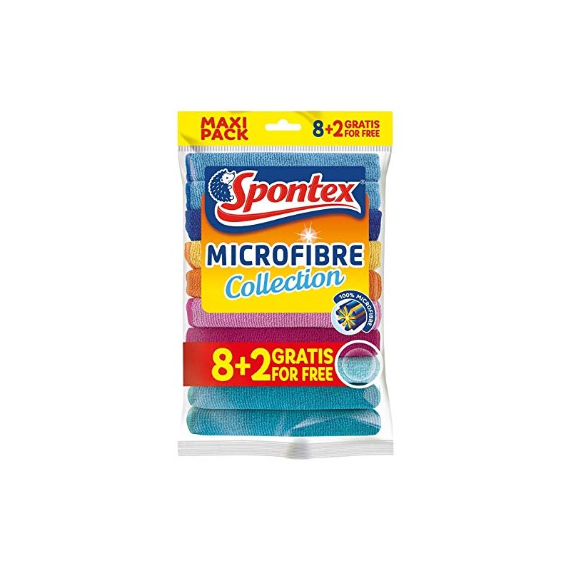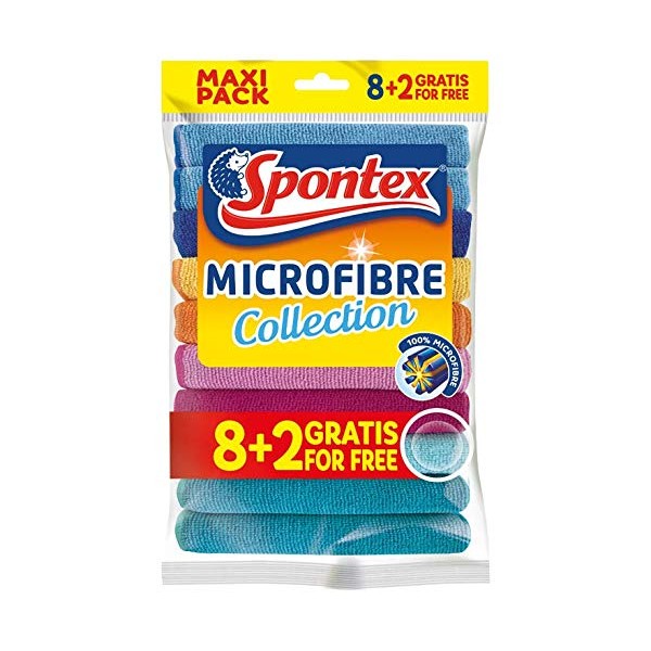 Spontex Microfibre Multi-Purpose Cloths 8 + 2 Free - Colourful (5 x 10 Items)