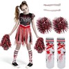 Spooktacular Creations Zombie Halloween Cheerleader Costume, Girls Scary Cheerless Costume, Kids Dead Cheerleading Outfit for Halloween Role Play Themed Parties, Red Black, M
