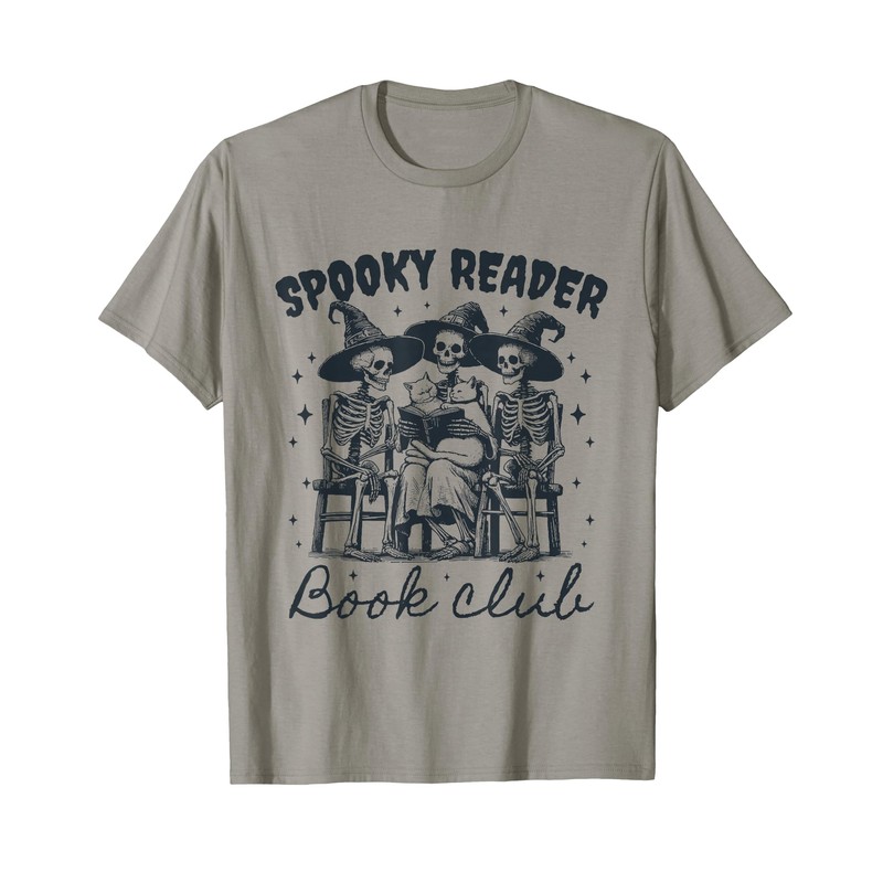 - Spooky reader book club design with skeleton witches, cats, and books in retro style. Perfect for book lovers, Halloween fans, and anyone who enjoys funny spooky literature humor.