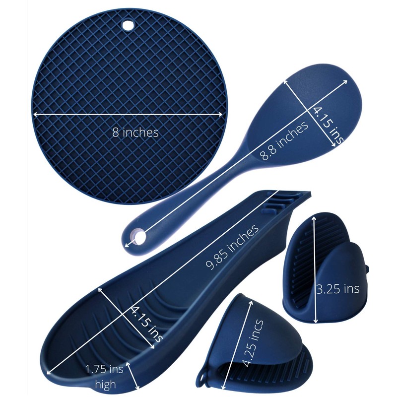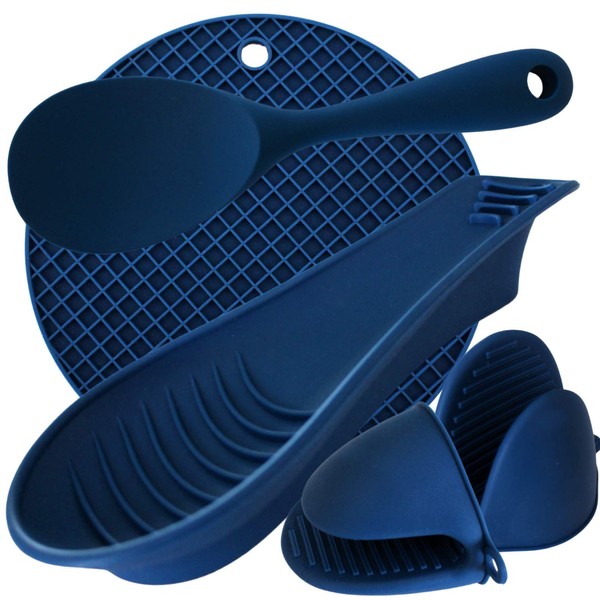 - Spoon Rest Set Including Rice Paddle – Silicone Spoon Rest, Trivet, Oven Mitts 5 Piece Set - Spoon Rest for Kitchen Counter, Spoon Rest for Stove Top or Utensil Rest