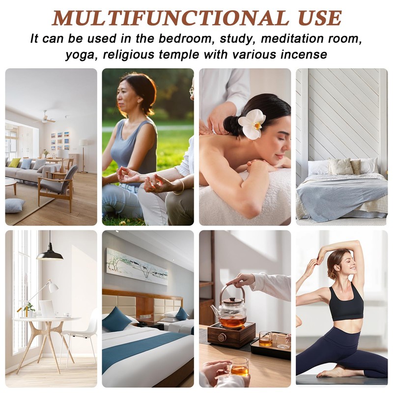 - Multifunctional incense burner: incense holder can be used with various incense sticks in bedrooms, study, meditation rooms, yoga, hotels, living rooms, spas, entertainment venues, religious temples, soothing and relaxing experience with pleasant fragrances