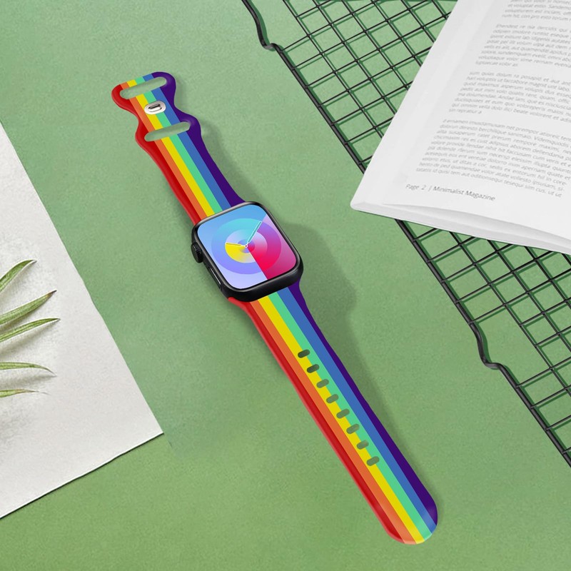 Sport Bands Compatible with Watch Band 38mm 40mm 41mm 42mm 44mm 45mm 46mm 49mm for Women Men Holiday Gift, Soft Silicone Waterproof Strap for iWatch Bands Series Ultra 10 9 8 7 6 5 4 3 SE, Rainbow