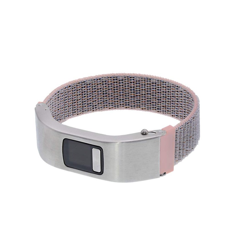 Sport Mesh Nylon Strap Compatible with vivofit 4 Replacement Band with Silver Metal Case - Pink Sand (Large)