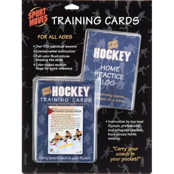 A deck of 60 illustrated cards, packed on both sides with instruction on skating, passing, puck handling, shooting and playing defense, plus rules, strategies and much more. Featuring a home practice section with off-ice drills that will make you a better hockey player. Includes Home Practice Log for recording reps for each of your practice sessions. Bonus: Each deck of cards includes a Home Practice Log to help keep track of your progress! These cards were created to help parents and coaches teach the fundamentals of hockey. The creators realize that young players respond well to visual stimulus, but often poorly to verbal instruction. So each Sport Moves Hockey Training Card demonstrates, via illustration, the physical moves and motions of the fundamentals and drills described on the card. Adding this visual element to teaching a child how to play hockey will make them understand the concepts. Top-flight instruction from professional and college-level coaches Home Practice section featuring individual drllls Included Home Practice Log for tracking personal progress Full-color illustration combined with clear, concise instruction A great back up to when the coach is running late and you have to subtitue coach when your only experiance is watching the game on TV. Also helps parents to make sure they are helping out rather than teaching the wrong things when practicing at home