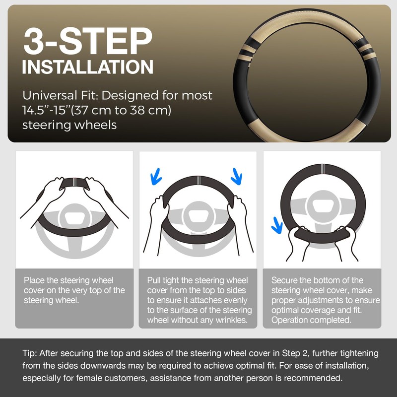 - 【Universal Fit & Easy Installation】Flexible inner lining fits most standard steering wheels (14.5"-15"), quick slip-on design for effortless installation.