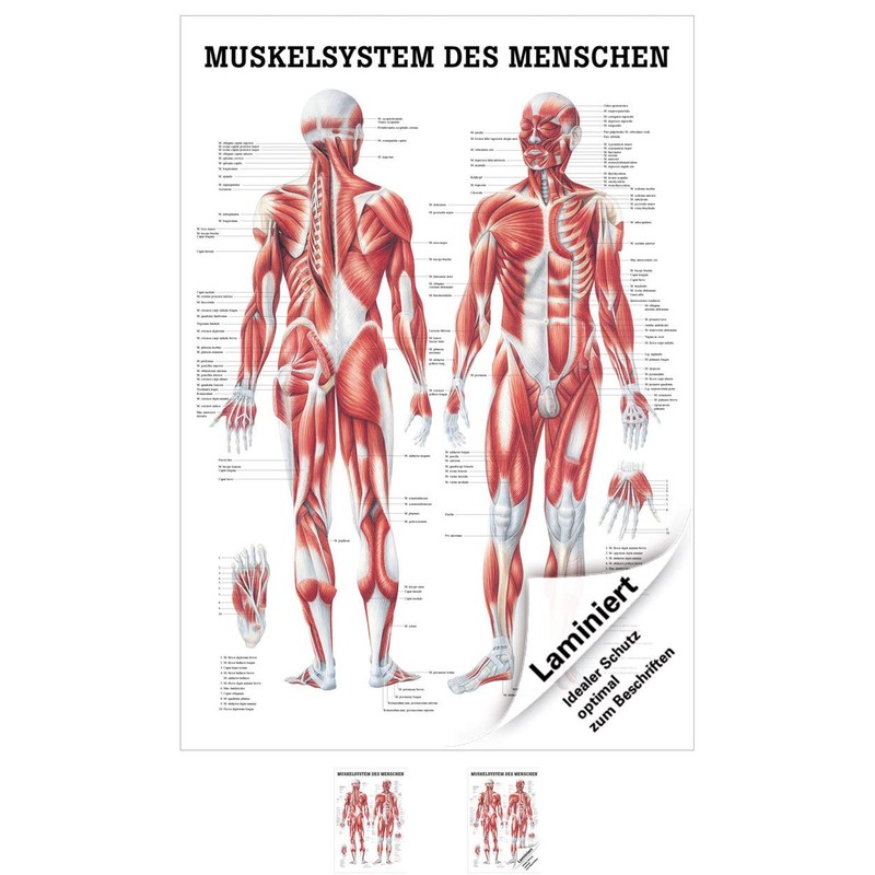 Anatomical mini poster "Muscle System of Man", 34 x 24 cm, laminated.