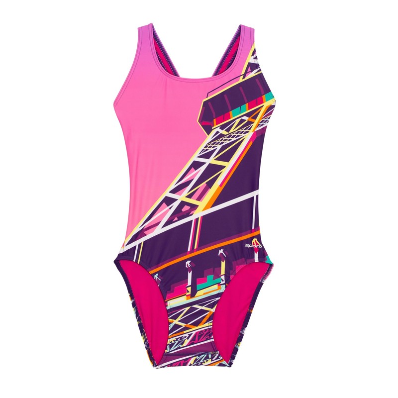 Sporti Wide Strap Athletic Swimsuit for Women, Big Girls, Youth Swimmers - Swim Team Bathing Swimsuits, Thick Straps & Full Coverage - Paris Sunset Wide Strap - Sunset - 24