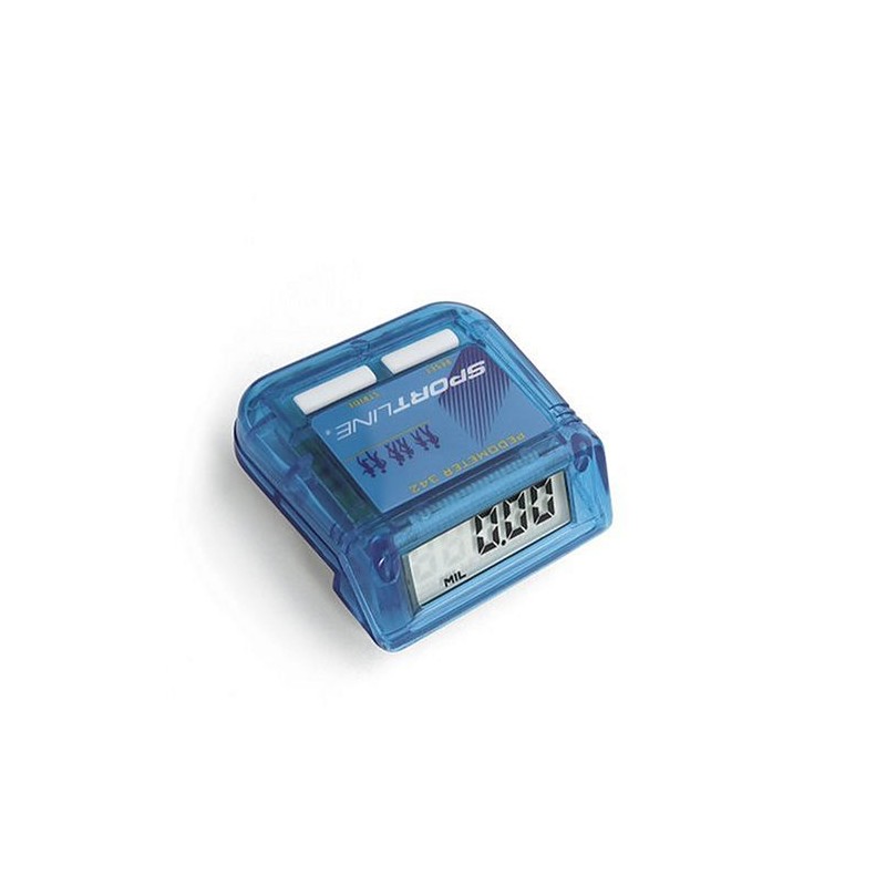 Easy to read and to set during activity, the Sportline 342 Distance pedometer is a great tool for all walkers, hikers, and joggers. The 342 accurately measures steps you take, and it features both automatic and manual stride measurement (adjustable from 1 to 5 feet) to assist you with accurate stride length setting. This pedometer records 0.01 to 1,000 miles on the large electronic digital display. It takes a single press of a button to reset back to zero or to set stride. It features tuned pendulum movement and a tough belt clip. It's powered by an LR44 battery.