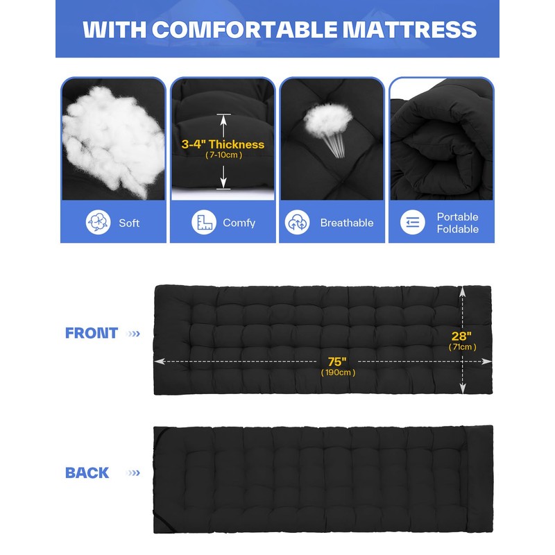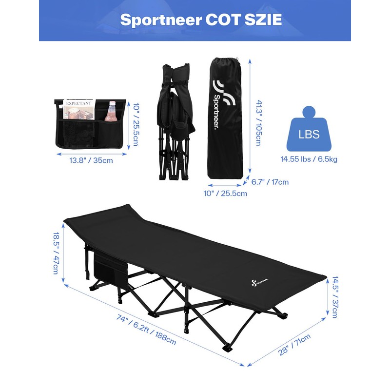 - Comfortable Mattress: Sportneer Camping Cot with mattress, soft pad add extra comfort, you can sleep more comfortably in this portable foldable bed for camping. In summer, the camping cot for adults can also be take away to increase the breathability.