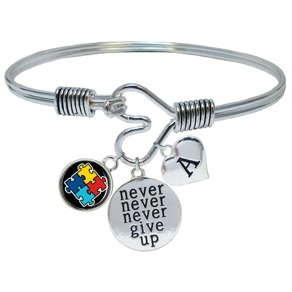 Sports Accessory Store Custom Autism Awareness Ribbon Never Give Up Bracelet Choose Initial