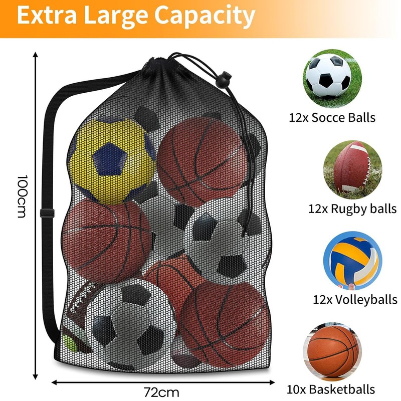 Sports Ball Bag Mesh – 30"x40" Large Capacity Mesh Ball Bag with Adjustable Strap for Basketball, Soccer, Volleyball & Swimming Gear